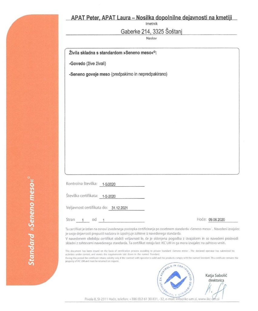 Eni iz med redkih slovenskih kmetij se lahko pohvalimo z certifikatoma za #MLEKO SENENE PRIREJE in goveje #SENENO MESO