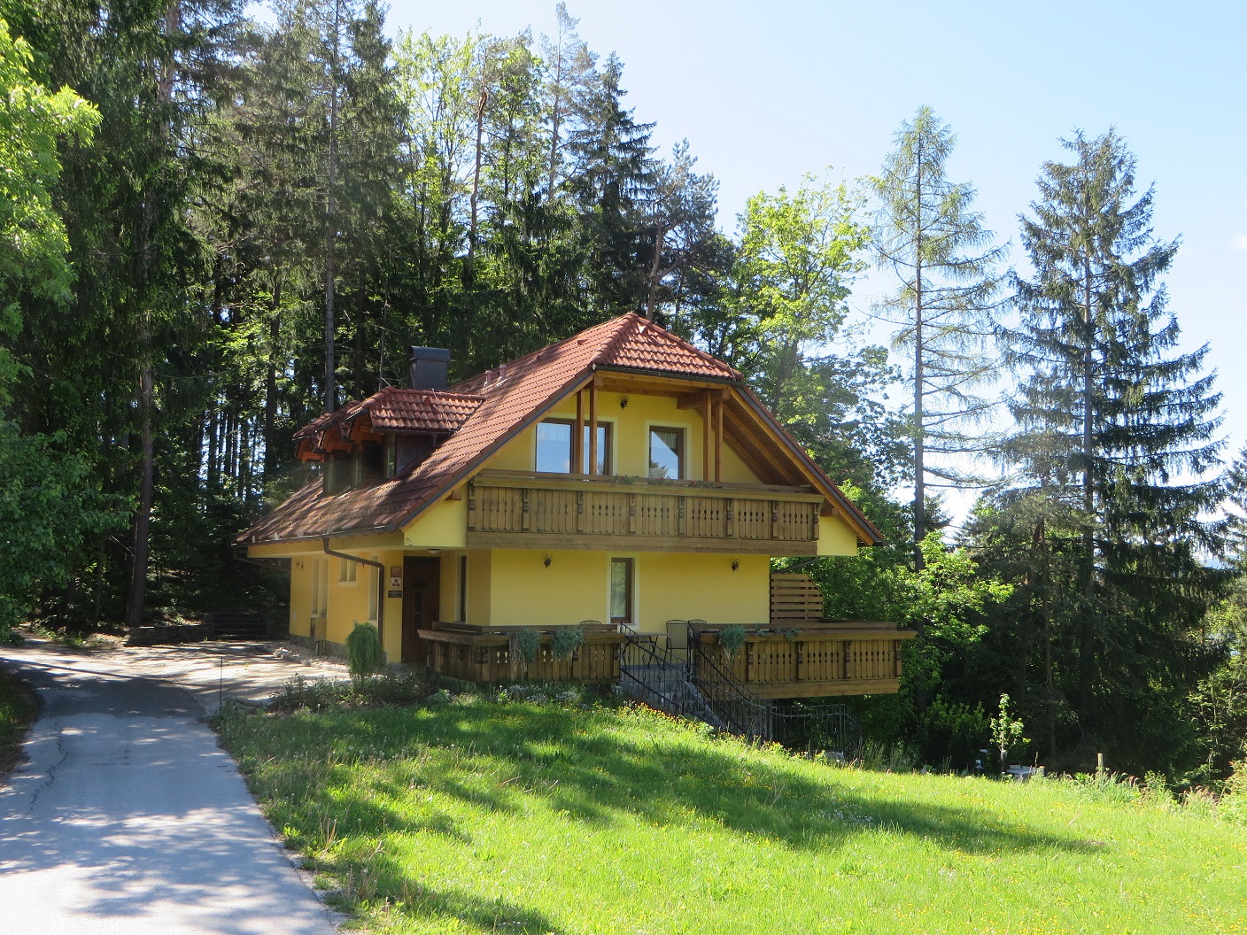 V zgornjem nadstropju idilične hiške sta dva ločena dvoposteljna apartmaja s kuhinjo in kopalnico, eden ima razgled na hribe in travnike, drugi pa v pravjični gozd za hišo. V obeh lahko prespi tudi dodatna oseba na raztegljivem kavču.