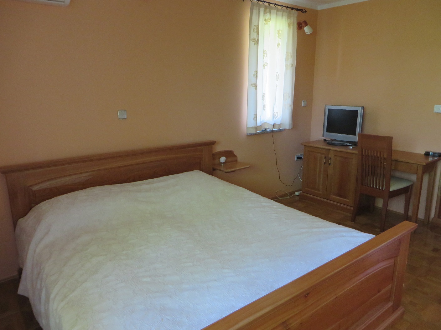 V pritličju sta vam na voljo dve ločeni dvoposteljni sobi s kopalnico, ki si delita kuhinjo ter skupni prostor. Poleg tega pa se v pritličju nahaja tudi sobica z pogradom tako, da imajo vaši otroci, če želijo malo skrivališče stran od staršev.